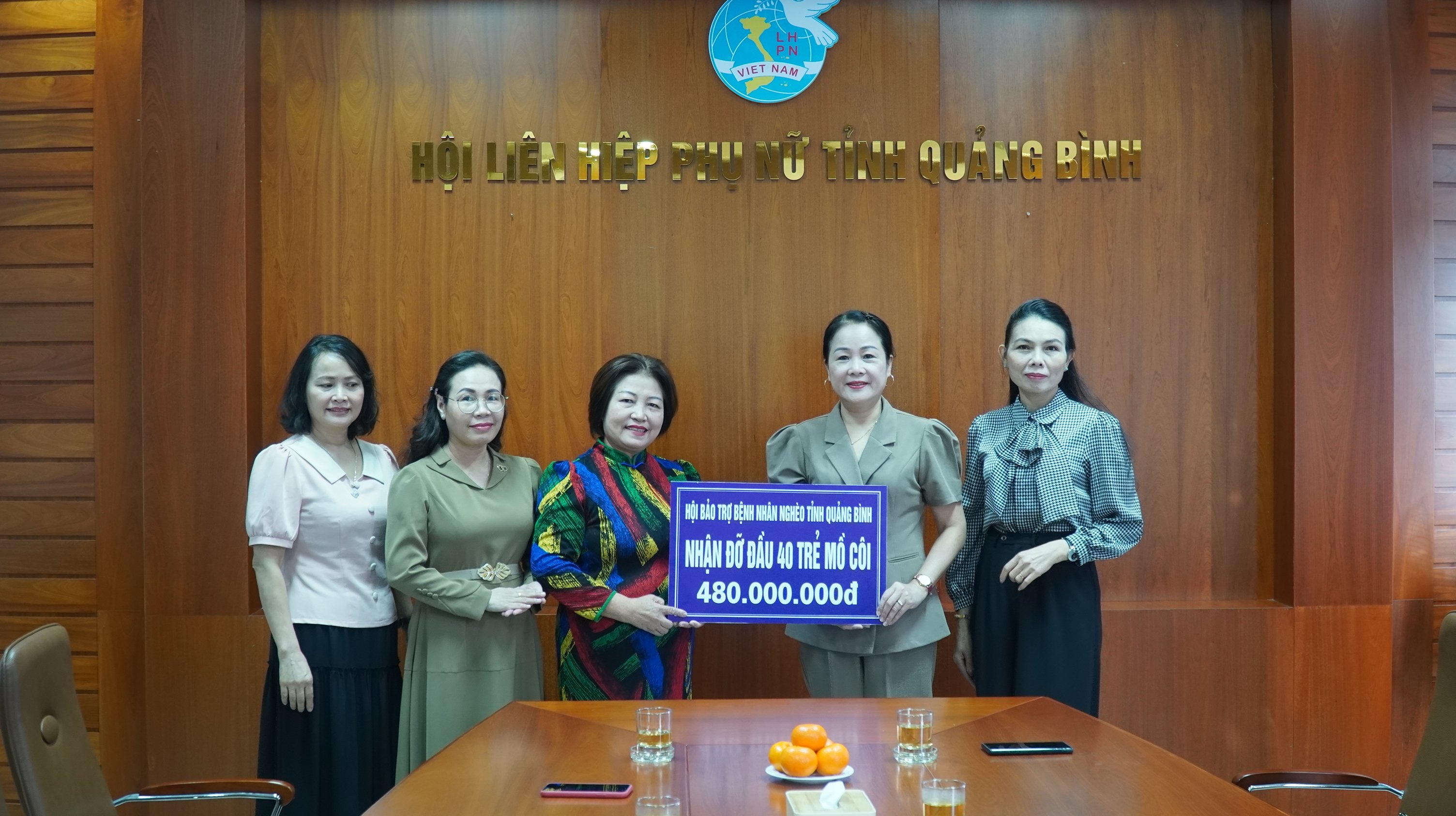 mồ côi và trao 480 triệu đồng cho Hội LHPN tỉnh trong chương trình“