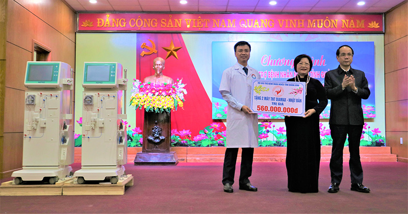 trao hai máy thận nhân tạo trị giá 700 ( nhà tài trợ giảm giá 140 triệu đồng) triêu đồng cho
