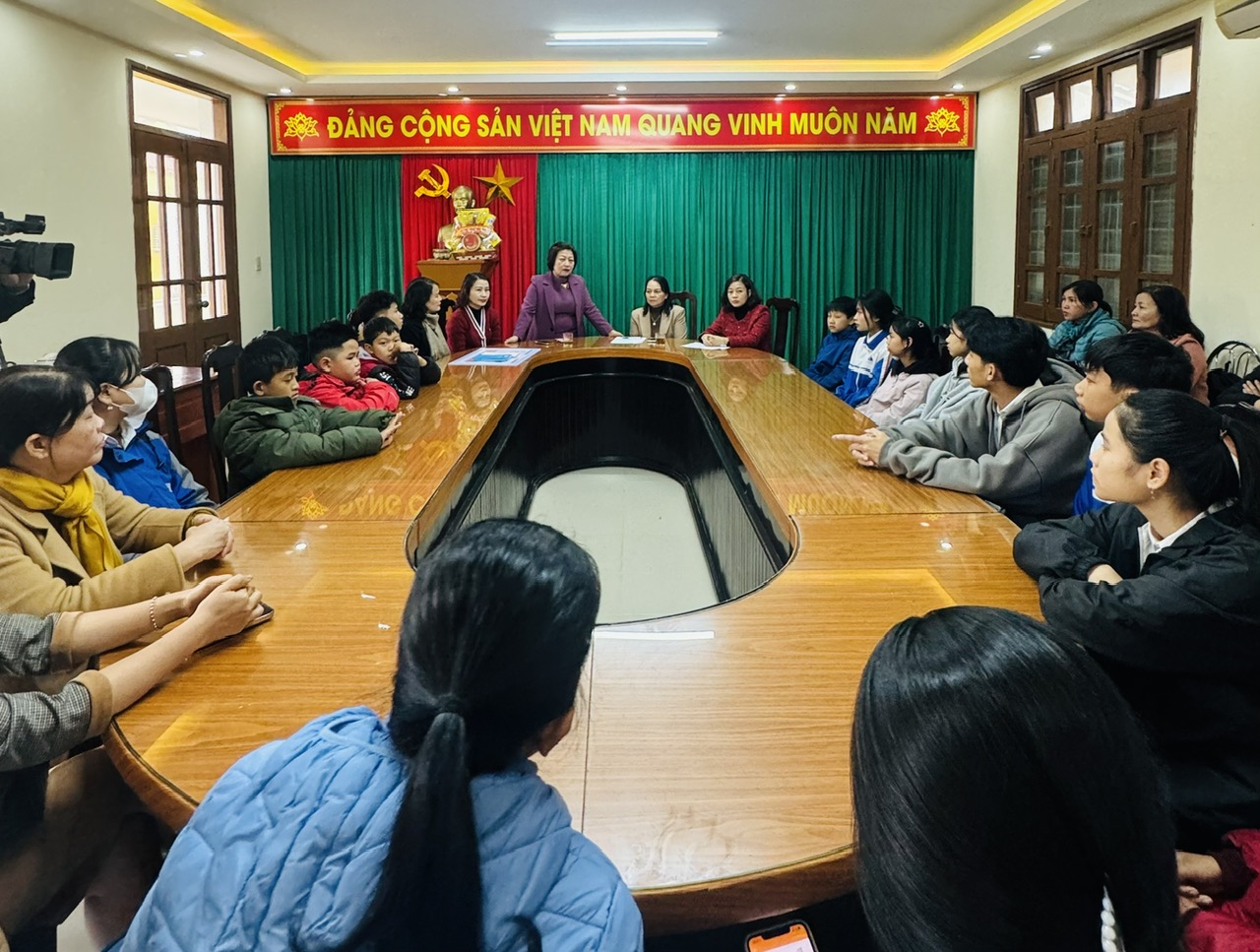 Hội Phụ nữ Huyện, xã, 14 em được hỗ trợ và gia đình vui mừng nghe