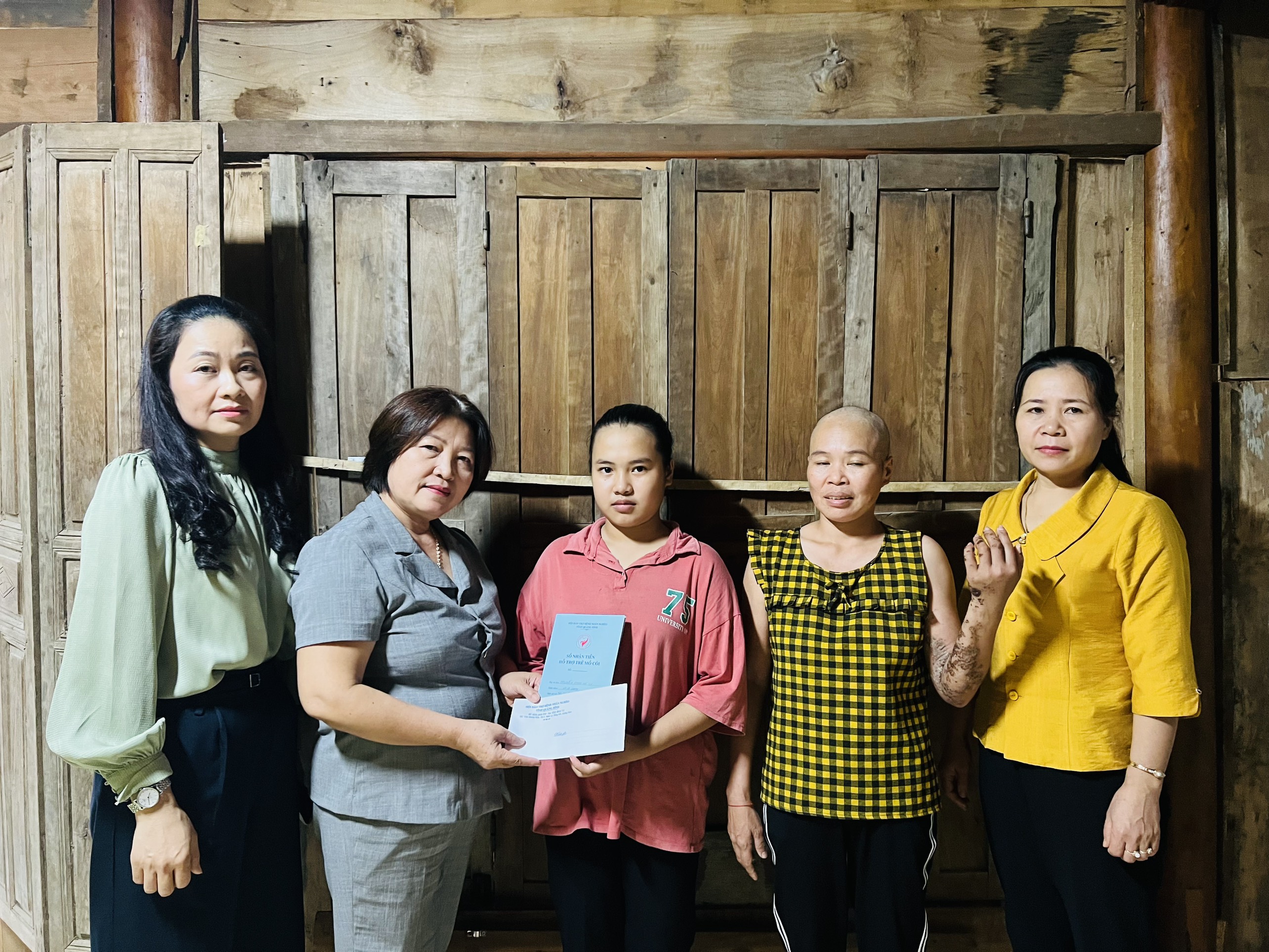 Chủ tịch Hội BTBNN Quảng Bình cùng đoàn công tác thăm và trao tiền hỗ trợ cho cháu Hà Vy. Cháu Nguyễn Ngọc Hà Vy mồ côi bố từ năm 3 tuổi, một mình mẹ là trụ cột nuôi 2 chị em ăn học, cuộc sống tuy khó khăn nhưng vẫn có thể duy trì. Nhưng bất hạnh không dừng lại ở đó, mẹ cháu bị ung thư đại tràng giai đoạn II và bệnh Zona thần kinh, hiện đang điều trị tại Hà Nội. Cuộc sống vốn khó khăn nay lại càng khó khăn hơn. Để có tiền điều trị hàng tháng tại bệnh viện cũng phải vay mượn, nhưng với căn bệnh ấy biết rồi còn sống được bao lâu... Người mẹ nghèo mang trong mình căn bệnh quái ác ấy luôn đau đáu một điều, lỡ mai mình không gắng gượng được nữa ai sẽ chăm sóc các con, ai sẽ giúp mình trả thay khoản nợ này... Sự hỗ trợ kịp thời của Hội Bảo trợ bệnh nhân nghèo tỉnh là nguồn động viên cả về tinh thần lẫn vật chất với gia đình cháu Hà Vy.