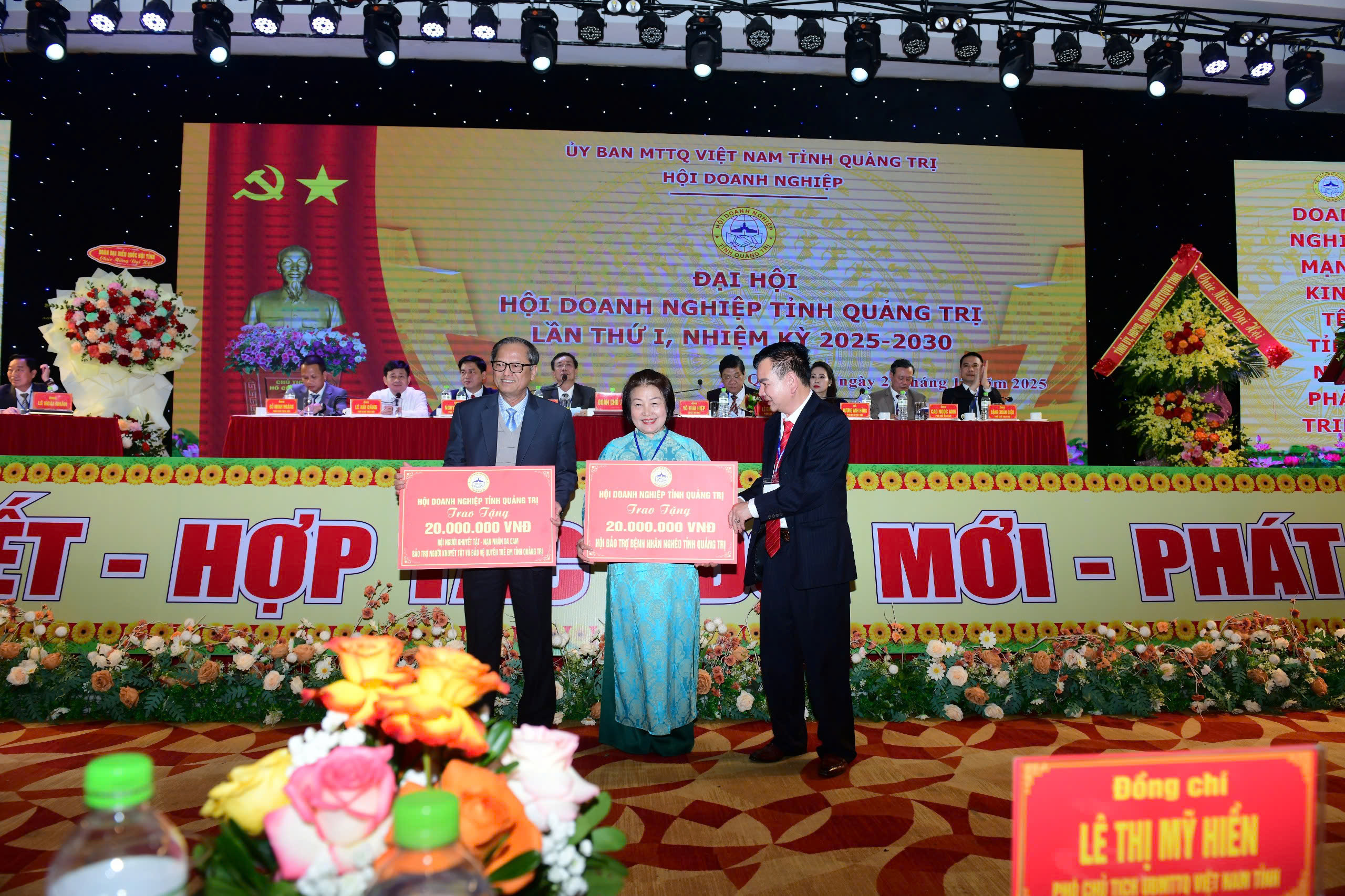 Tại Đại hội, Hội Doanh nghiệp tỉnh Quảng Trị đã trao số tiền 20 triệu đồng để hỗ trợ bệnh nhân nghèo. Món quà tuy không lớn về vật chất nhưng mang ý nghĩa tinh thần sâu sắc, thể hiện tấm lòng nhân ái, sự sẻ chia kịp thời và trách nhiệm xã hội của Hội doanh nghiệp đối với bệnh nhân nghèo.