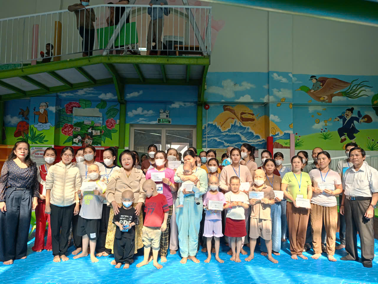 Chủ tịch Hội BTBNN Hội trao tiền hỗ trợ cho 35 bệnh nhi ung thư có hoàn cảnh Theo kế hoạch, ban đầu có 30 cháu phải điều trị tại bệnh viện qua Tết nguyên đán nhưng đến thời điểm trao, con số đó không những không giảm bớt mà còn tăng thêm. Thêm 5 cháu vào phải vào điều trị tại bệnh viện mà không được về nhà đón Tết đồng nghĩa với việc thêm ít nhất 5 gia đình thêm gánh nặng lo âu khi cái Tết đang cận kề.Thật là thương cảm và xót xa khi nhìn các con đang vô tư cười nói với cái đầu không có tóc mà không hề biết mình đang mang trọng bệnh!