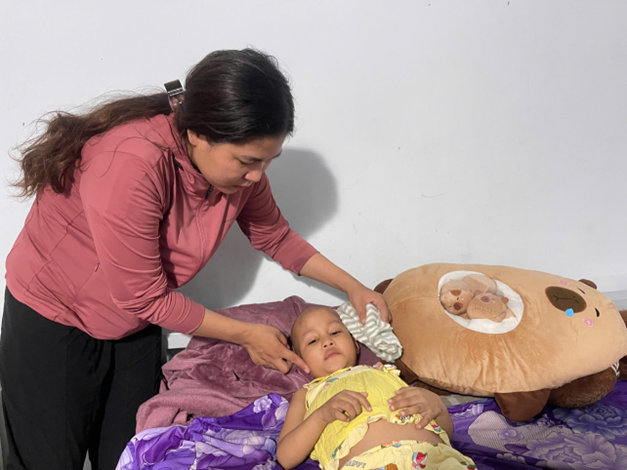 Khánh Chi sinh năm 2020, trú tại thôn Hải Đông, xã Phú Trạch được phát hiện mắc bệnh từ tháng 3/2025. Tính đến nay, em đã trải qua hơn 9 tháng điều trị liên tục với nhiều đợt hóa trị kéo dài, tóc đã rụng hết, ăn uống rất kém, sức khỏe còn rất yếu và cần tiếp tục điều trị lâu dài.